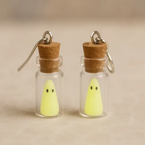 Boucles d’oreilles “Petits Fantômes” – Fiole phosphorescente